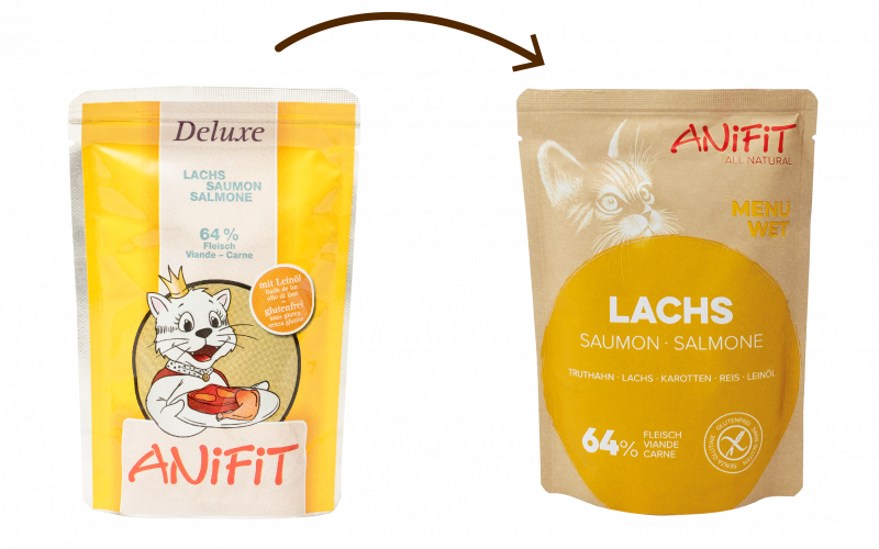 ANiFiT steht für natürliche Tiernahrung in hoher Qualität, dies kommt nun auch visuell zur Geltung. Die Rezepturund somit der Inhalt unserer qualitativ hochwertigen Produkte bleibt unverändert. Die offene und ehrliche 100%-Deklaration aller Inhaltsstoffe finden Sie, wie gewohnt, auf der Rückseite des Produktes und auf der Produktseite im Online Shop. Das neue Verpackungsdesign ist vereinfacht und strukturierter und hilft Ihnen, alle Informationen schnell zu erfassen. Im Zentrum stehen die Farben «grün» und «gelb», die für das jeweilige Sortiment Hund oder Katze stehen. Produkte, die für Hunde und Katzen geeignet sind,erscheinen neu in «braun», so wird klar getrennt und gut sichtbar, für welche Tierart, welches Futter geeignet ist.