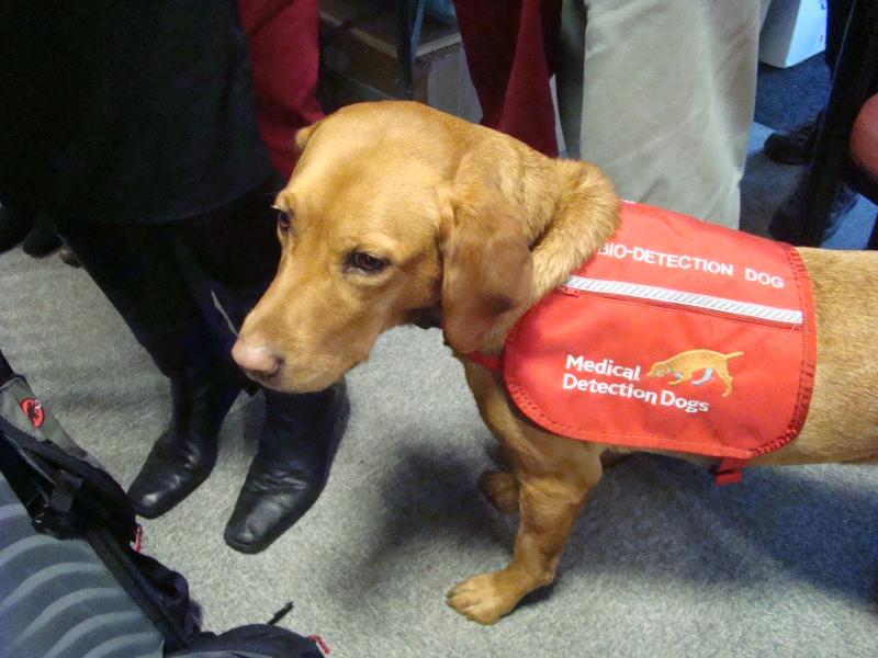 Claire Guests Geschichte mit den Krebsschnüffelhunden hat mit einer Zufallsbeobachtung begonnen. Sie beschreibt, wie ihre damalige Hündin sie immer wieder ansprang, immer an die rechte Brust. Beunruhigt ging Claire daraufhin zum Arzt, der zwar nichts ertasten konnte, aber ein Mammogramm anfertigte, und siehe da: Brustkrebs im Frühstadium, der sich noch relativ einfach entfernen und therapieren liess. Beide waren so fasziniert von der Reaktion des Hundes, dass sie die erste systematische wissenschaftliche Studie über Krebsschnüffelhunde initiierten, die 2004 herauskam. Für die Studie trainierten sie sechs Hunde verschiedener Rassen mit Clicker und Belohnung, so dass diese lernten, unter sieben Urinproben diejenige zu finden, die von einem Patienten mit Blasenkrebs stammte. Um die Krebsprobe anzuzeigen, legten sich die Hunde vor dieser Probe hin. Die Hunde waren viermal zuverlässiger als wenn sie zufällig gewählt hätten. Bei der Urinprobe eines scheinbar gesunden Mannes zeigten die Hunde übereinstimmend Krebs an. Nach einer gründlichen Untersuchung fand man bei ihm zwar keinen Blasenkrebs, aber Nierenkrebs. Die Hunde hatten also das Gelernte auf eine andere Krebsart generalisiert!
