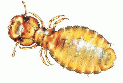 Hier das Bild einer Kieferlaus, sie ist ca. 1.5 mm lang.