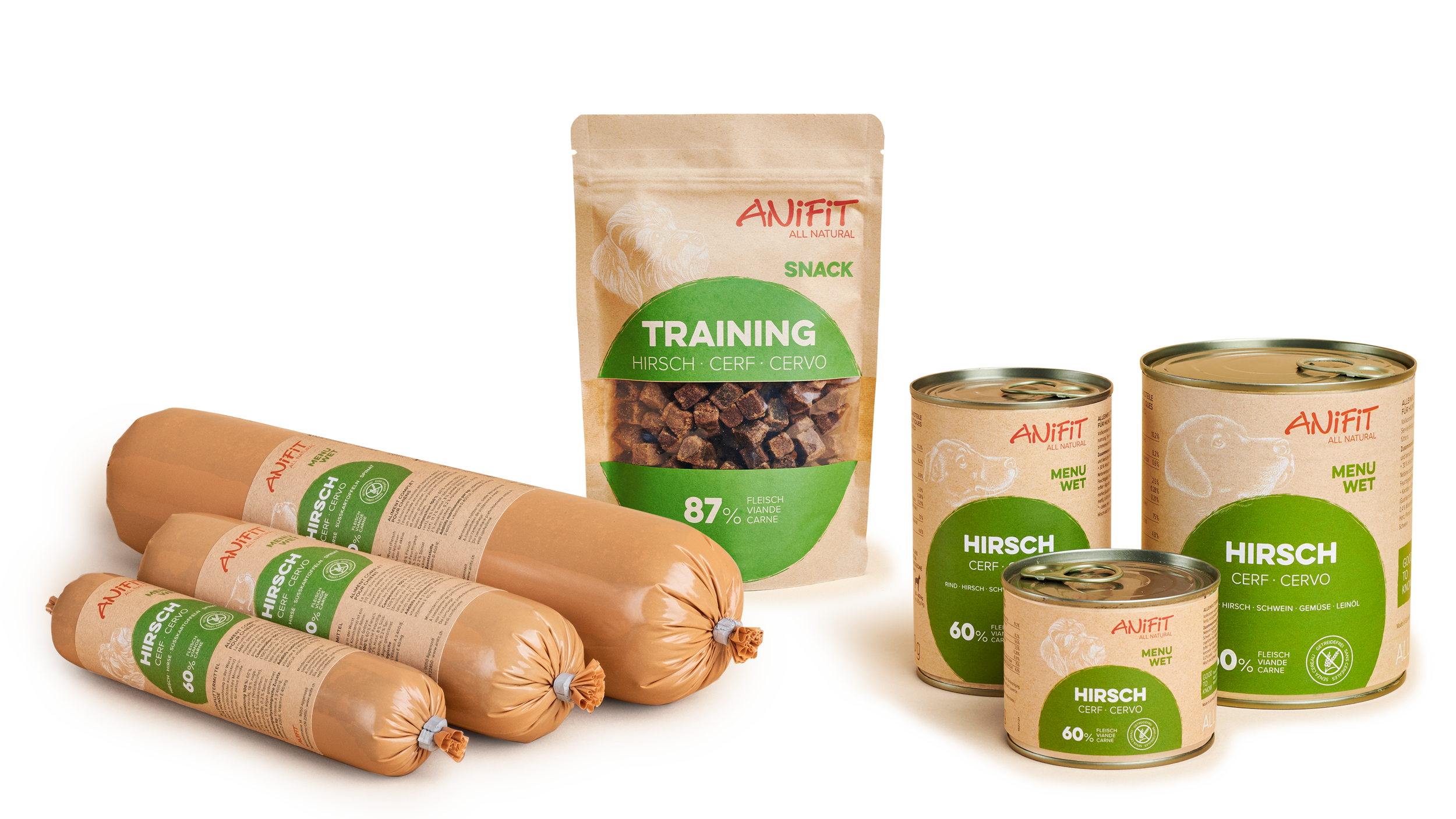 Wildfleisch ist für Hunde sehr gesund, denn es enthält wertvolle Proteine und Mineralstoffe sowie Vitamine und Omega- 3-Fettsäuren. Entdecke unser Sortiment an Hundefutter mit Wild (Hirsch), ob als Nassfutter, Würste oder Snack für zwischendurch.